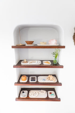 Our trays are a dream for creating intentional spaces on surfaces. It may not make sense to "put away" your most-used glasses or jewelry into a box or drawer. Enter our trays, which create a meaningful home for those items, anywhere that makes sense to you.