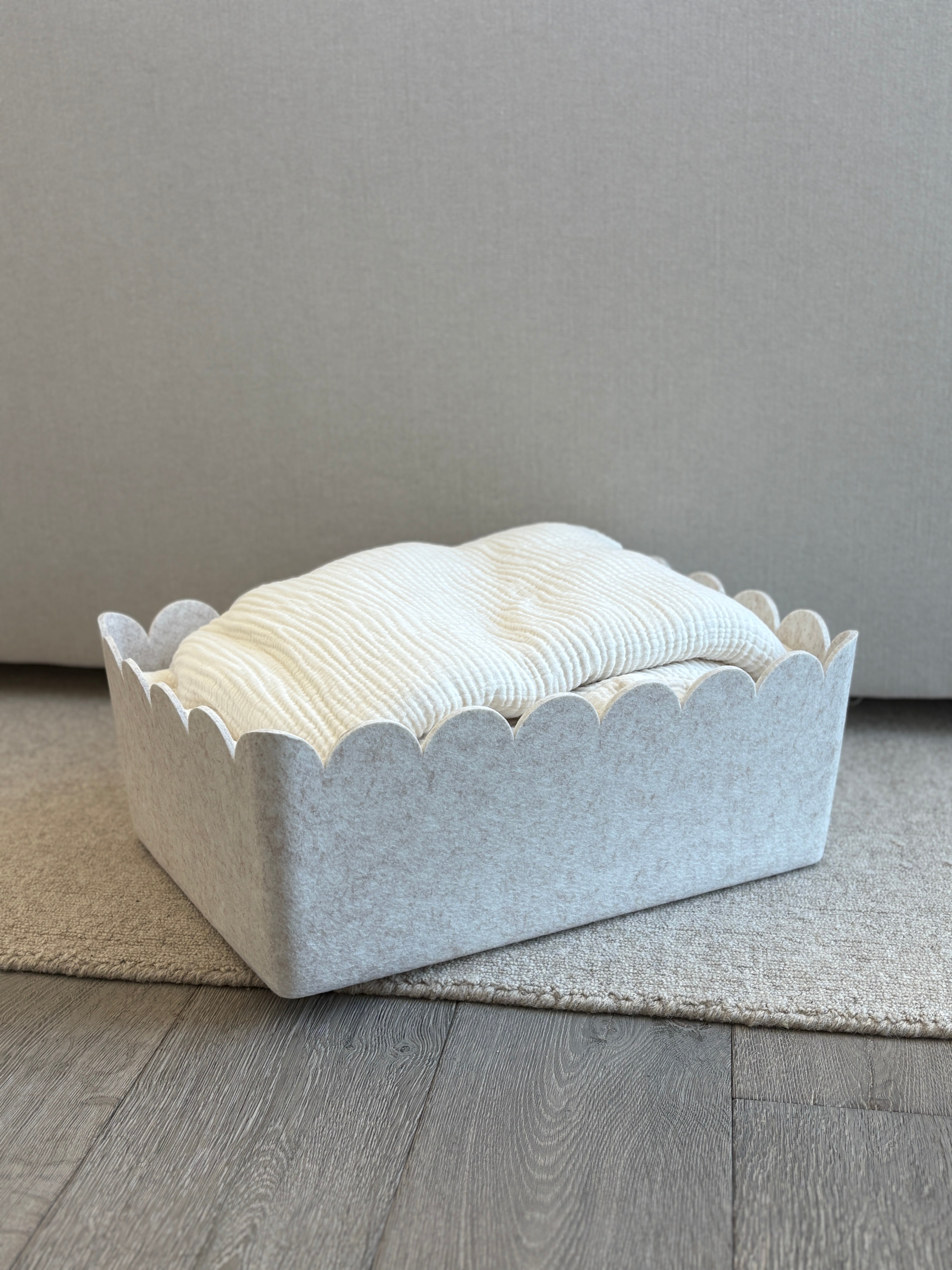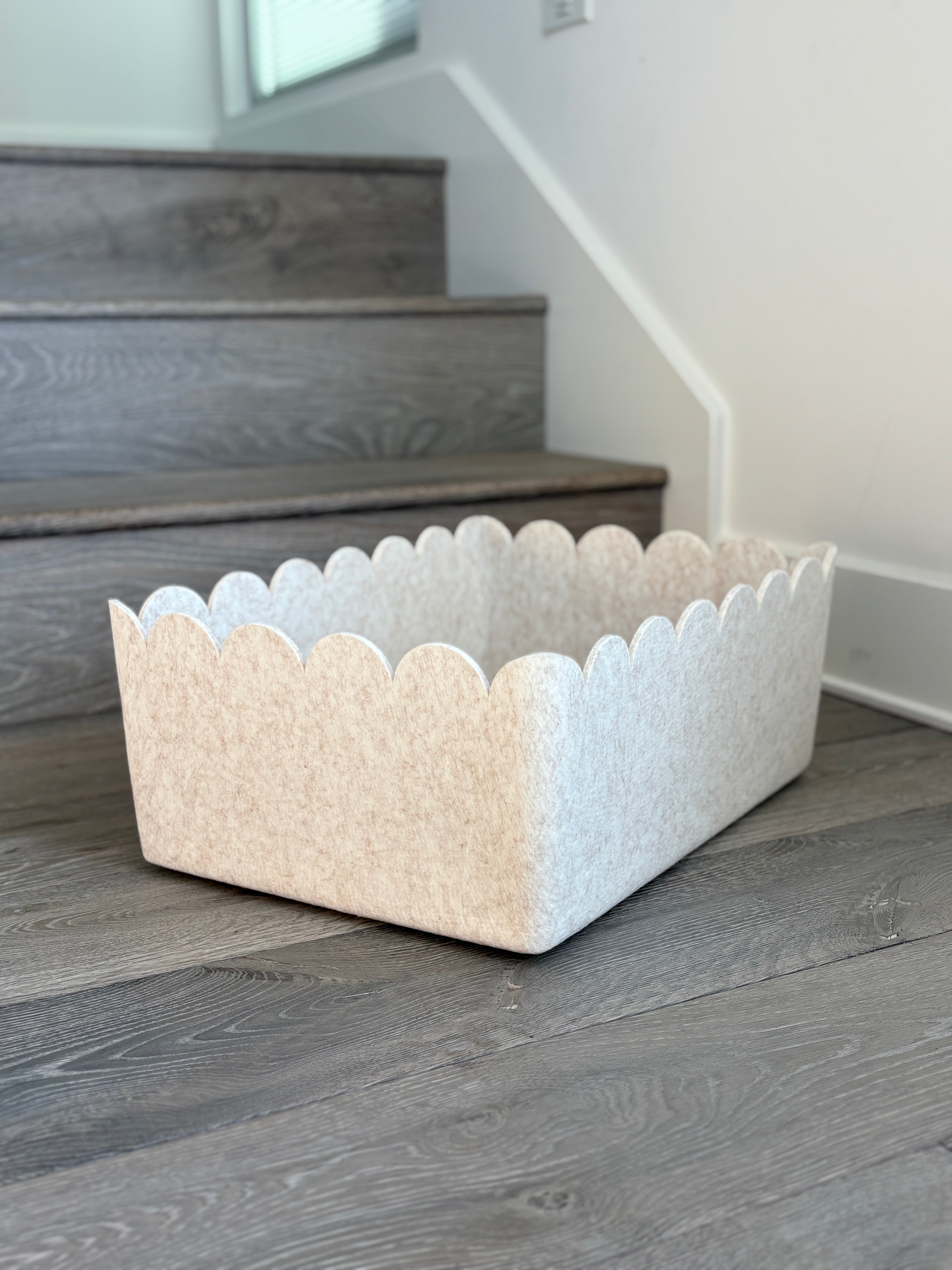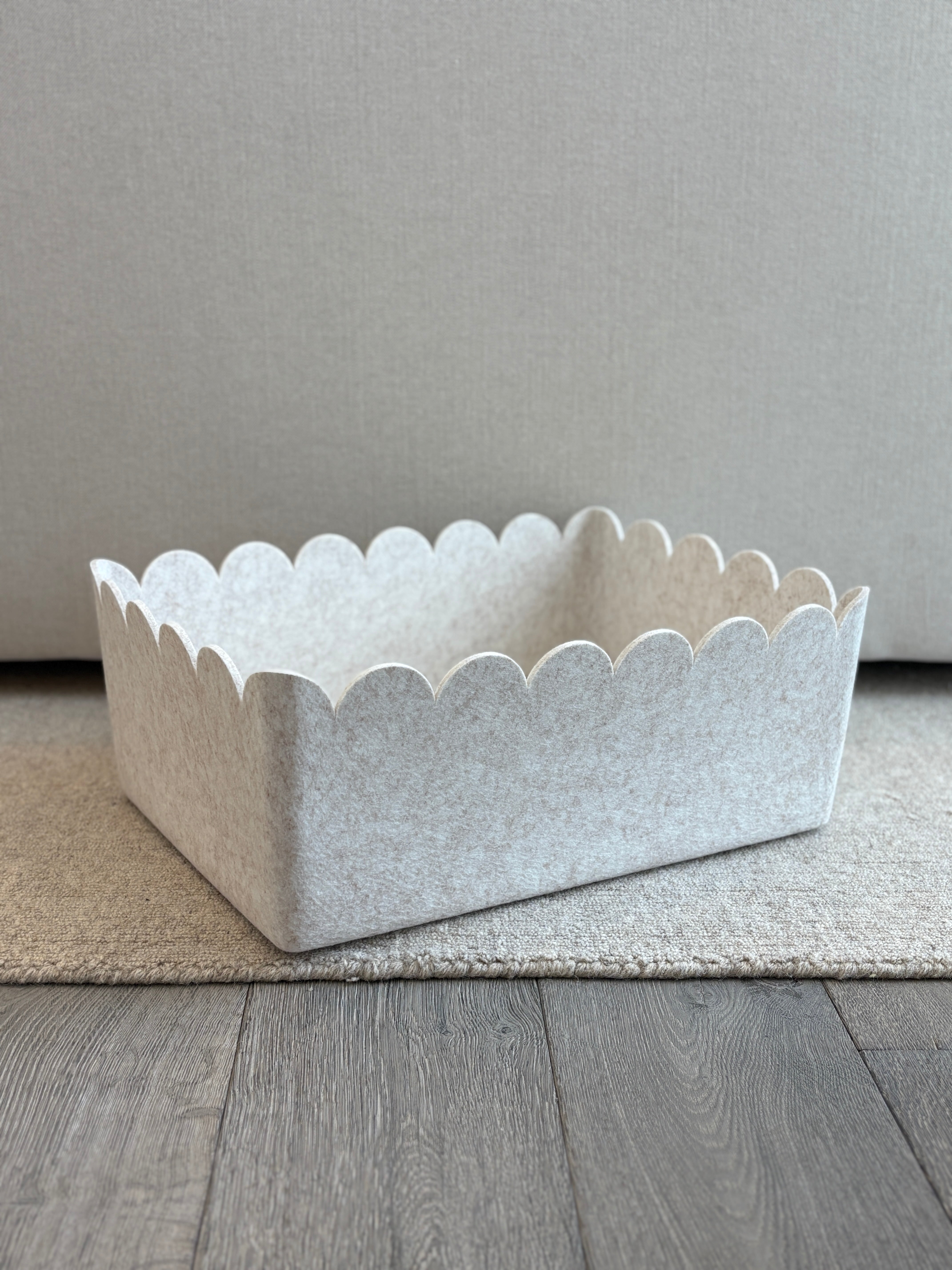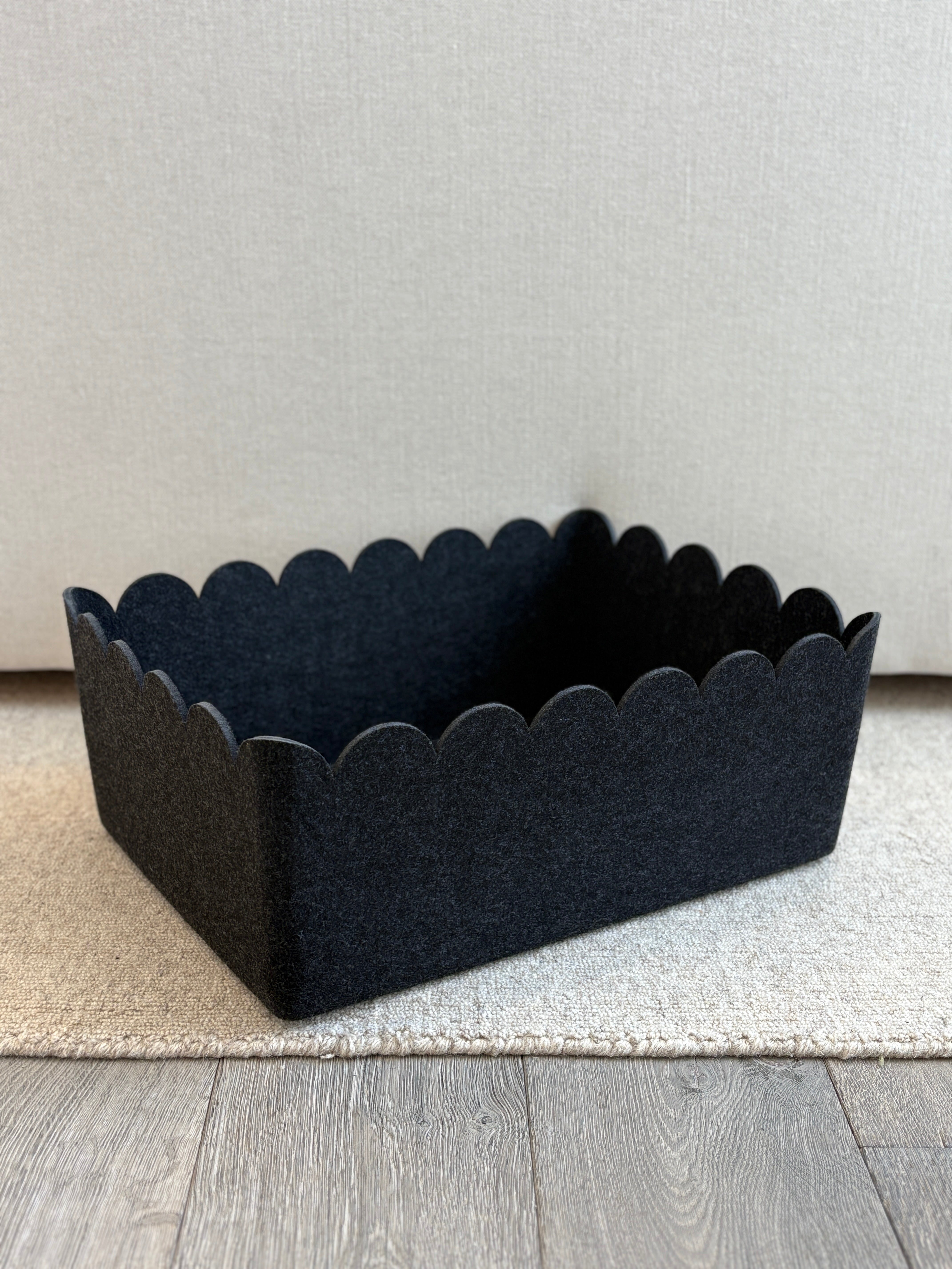 For those with substantial storage needs, our Scalloped Sculpted Bin – XL provides an expansive solution with an elevated decorative touch. Finished with soft scalloped edges along the top, it enhances its sleek, modern shape without compromising structure.