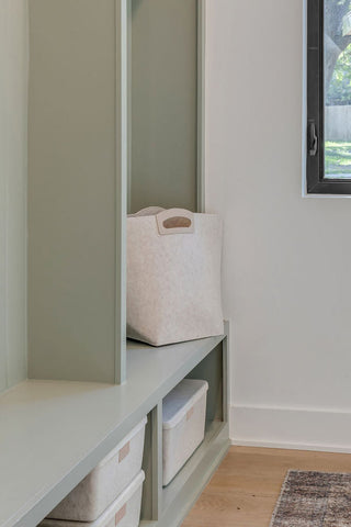 A Handle Bin by the door is one of our favorite tricks for keeping entryway clutter at bay. This tote-bin hybrid is perfect for holding everything you need on the way out—and it keeps its elevated look and structured shape while waiting for you to grab and go.
