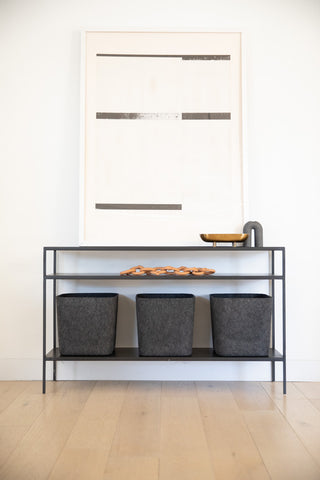 Whether you’re outfitting a credenza or a coat closet, choose lightweight bins. Ease of use is especially important here—if you want systems here to get used, the storage needs to be easy for to navigate for everyone in the household.